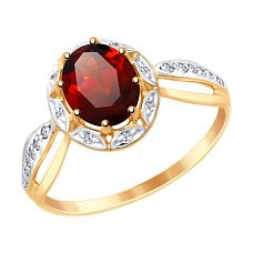 Кольцо SOKOLOV - Золото 585, Гранат, Фианит (арт. 717290)
