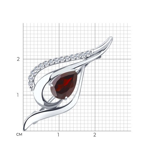 Брошь Diamant - Серебро 925, Гранат, Фианит (арт. 94-340-01045-2)