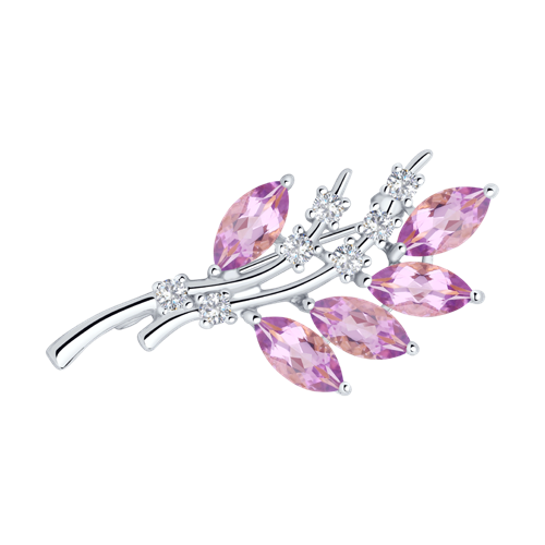 Брошь SOKOLOV - Серебро 925, Аметист, Фианит (арт. 92040011)