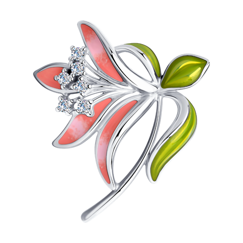 Брошь SOKOLOV - Серебро 925, Фианит, Эмаль (арт. 94040199)