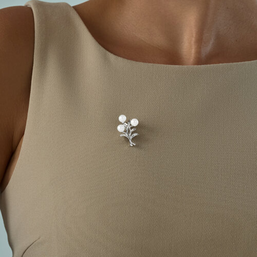 Брошь SOKOLOV - Серебро 925, Жемчуг имитация (арт. 94040284)