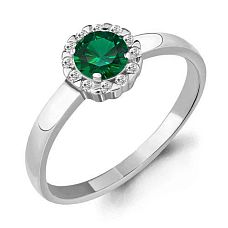 Кольцо Аквамарин - Серебро 925, Синтетический изумруд, Фианит (арт. 68938АГ.5)