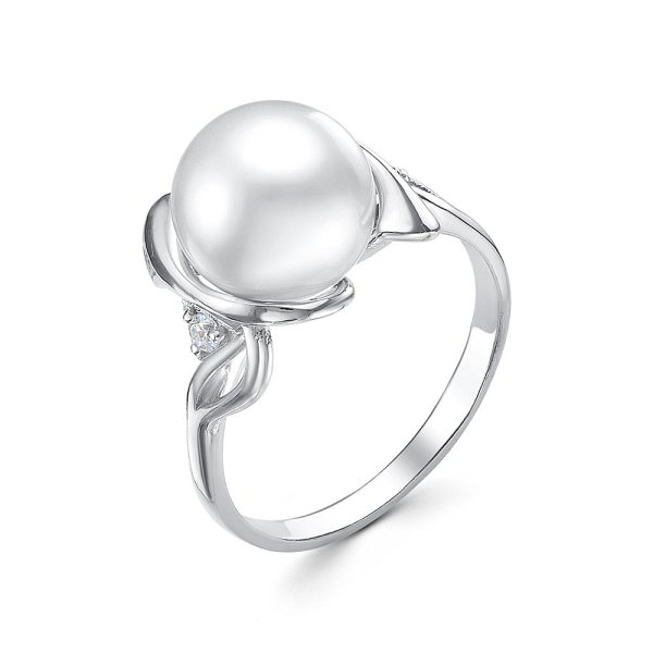 Кольцо Красная пресня - Серебро 925, Жемчуг имитация, Фианит (арт. 23612018Д)