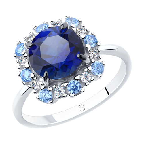 Кольцо SOKOLOV - Серебро 925, Синтетический сапфир , Фианит (арт. 88010059)