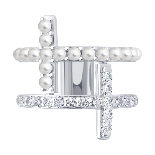 Кольцо SOKOLOV - Серебро 925, Жемчуг имитация, Фианит (арт. 94014597)