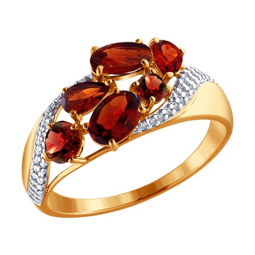 Кольцо SOKOLOV - Золото 585, Гранат, Фианит (арт. 713700)