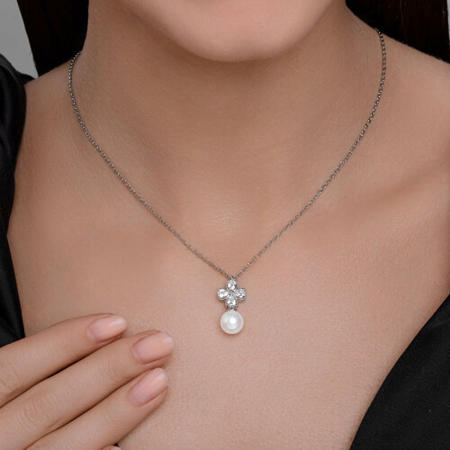 Колье SOKOLOV - Серебро 925, Жемчуг имитация, Фианит (арт. 94071094)