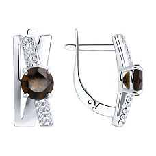 Серьги SOKOLOV - Золото 585, Раухтопаз, Фианит (арт. 727095)