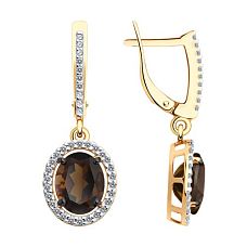 Серьги SOKOLOV - Золото 585, Раухтопаз, Фианит (арт. 724322)