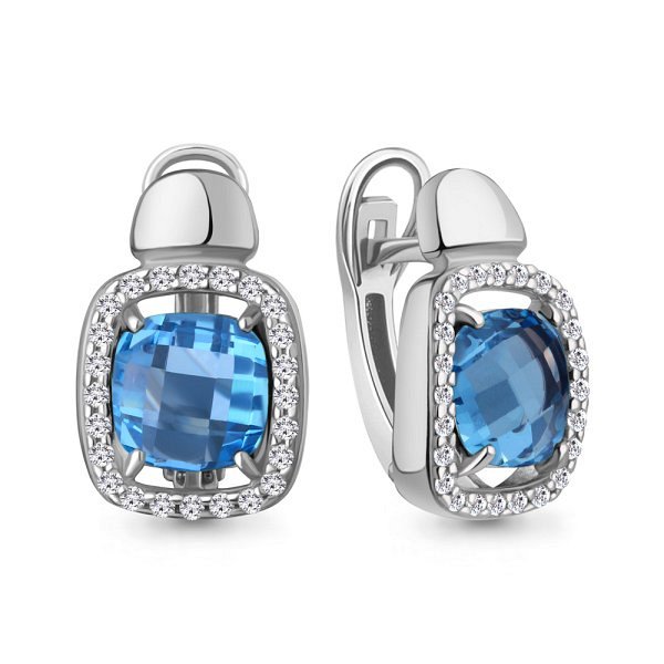 Серьги Аквамарин - Серебро 925, Синтетический топаз, Фианит (арт. 45009992А.5)