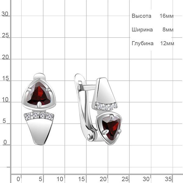 Серьги Аквамарин - Серебро 925, Гранат, Фианит (арт. 4752403А.5)
