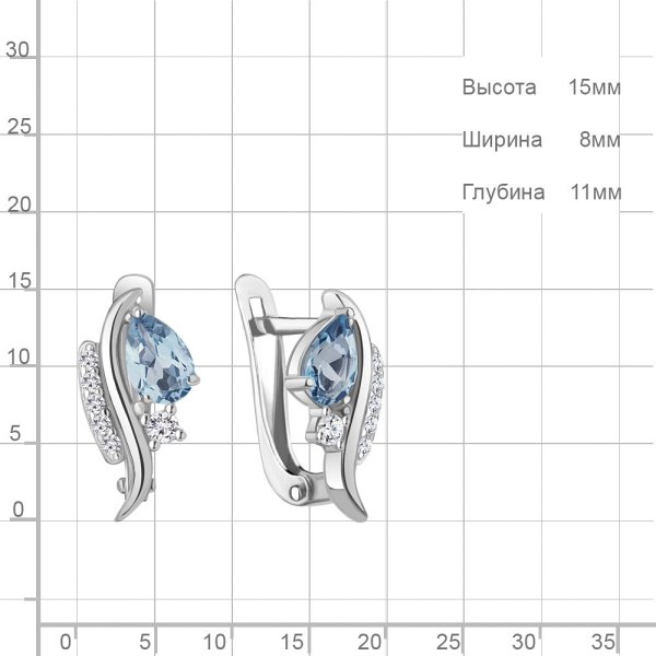 Серьги Аквамарин - Серебро 925, Топаз, Фианит (арт. 4791005А.5)
