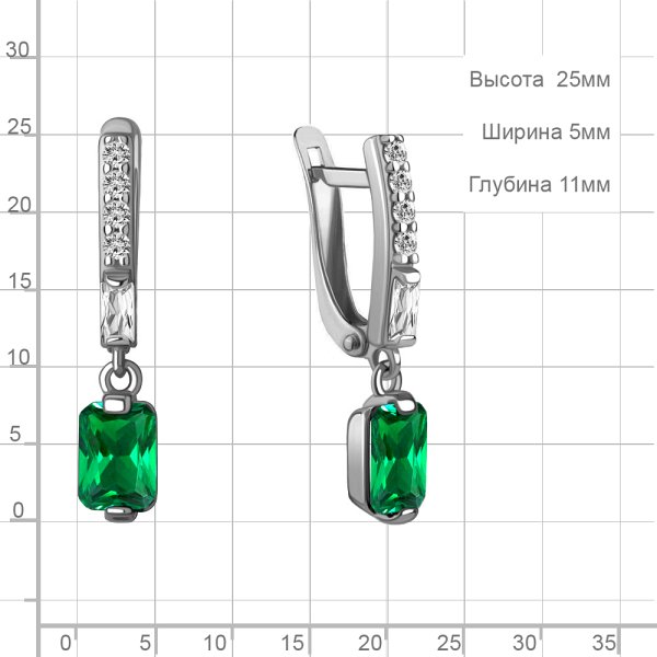 Серьги Аквамарин - Серебро 925, Синтетический изумруд, Фианит (арт. 49828АГ.5)