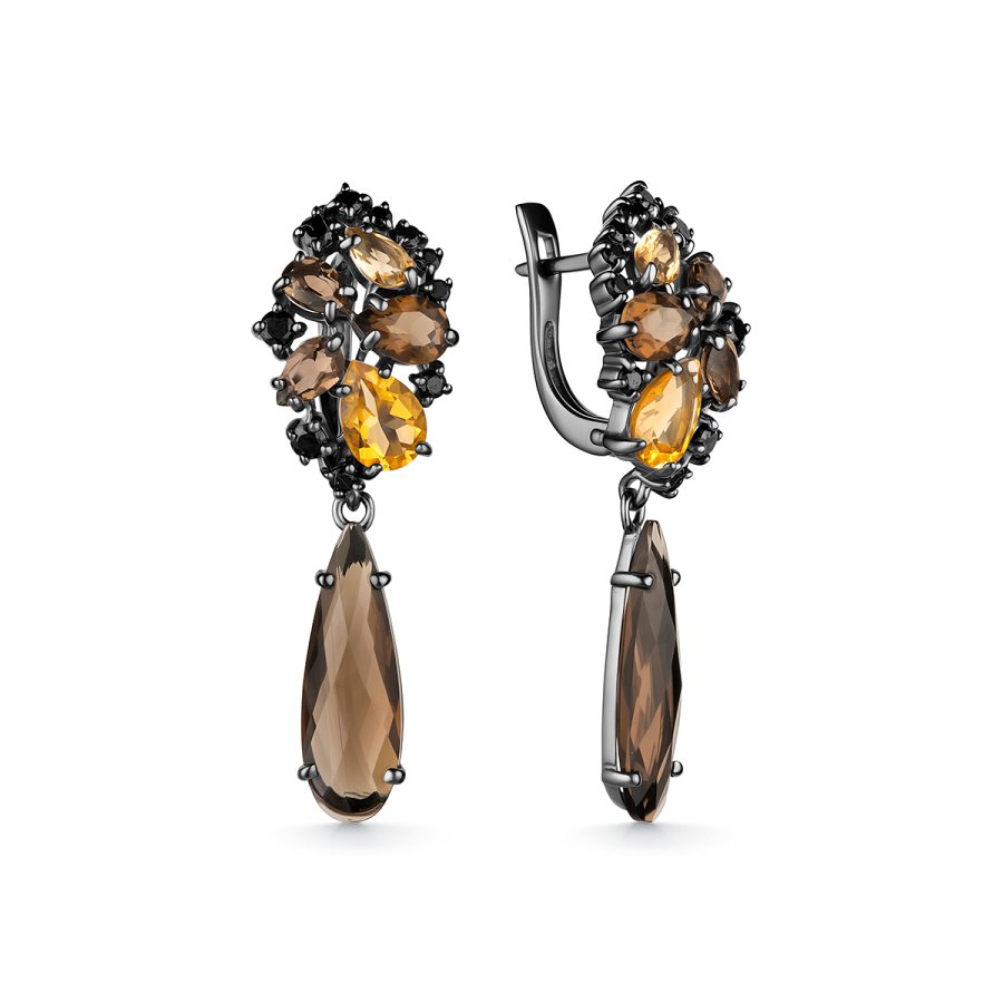 Серьги Дар - Серебро 925, Раухтопаз, Цитрин, Шпинель (арт. С-3262чрс4070516)