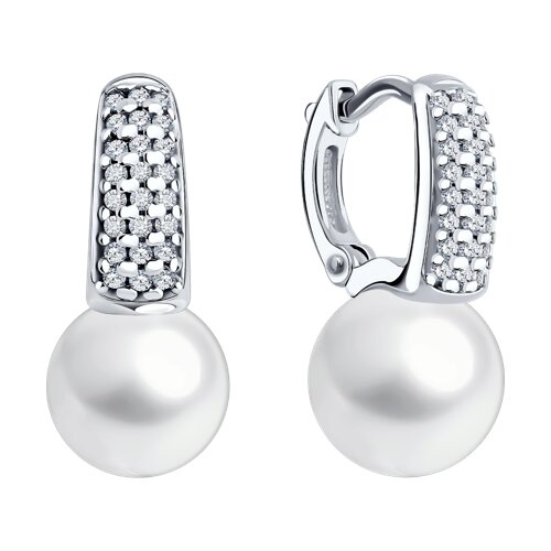 Серьги Diamant - Серебро 925, Жемчуг синтетический, Фианит (арт. 94-120-00192-1)