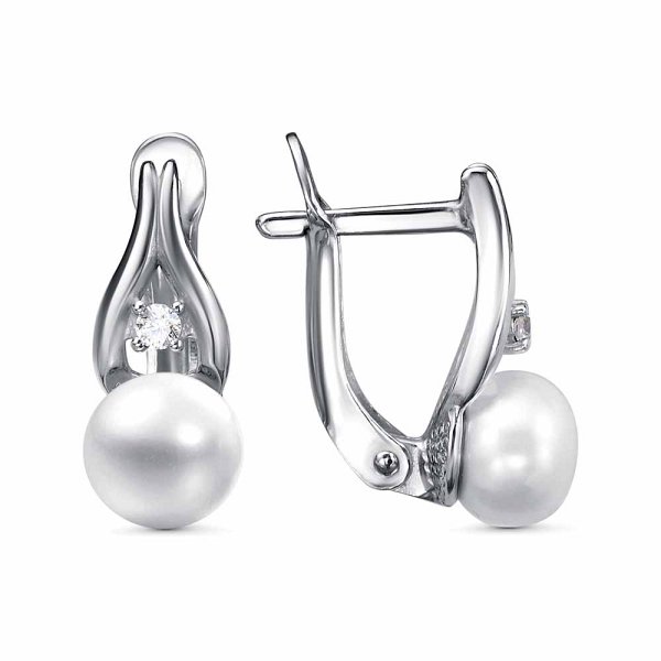Серьги Красная пресня - Серебро 925, Жемчуг культивированный, Фианит (арт. 33315842Пл)