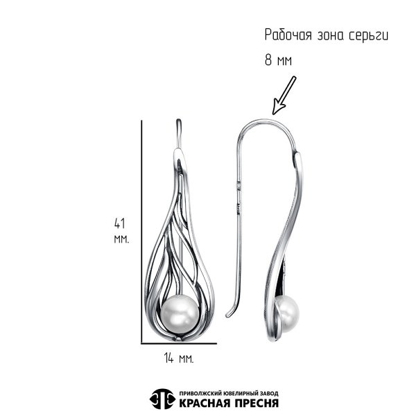 Серьги Красная пресня - Серебро 925, Жемчуг культивированный (арт. 33316392)
