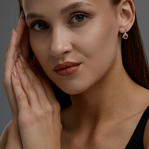 Серьги SOKOLOV - Серебро 925, Фианит, Рубин (арт. 64020003)