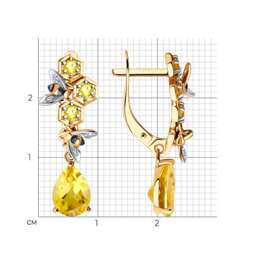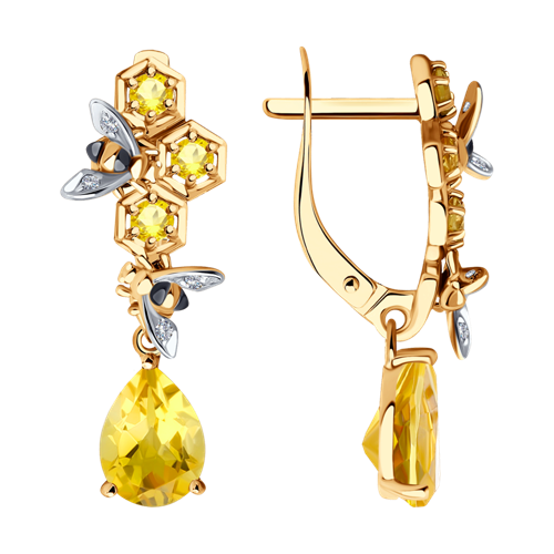 Серьги SOKOLOV - Золото 585, Фианит, Цитрин (арт. 728298)